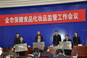 2013年3月13日,由濟南市食品藥品監(jiān)督管理局主辦的“濟南市保健食品化妝品監(jiān)管工作會議”在龍奧大廈隆重召開,來自濟南市及各縣(市)區(qū)監(jiān)管系統(tǒng)一線的執(zhí)法工作人員參加了此次會議。會議由濟南市食品藥品監(jiān)督管理局保化處陳廣銀處長主持,濟南市食品藥品監(jiān)督管理局衣光軍副局長、?;幎艜詡タ崎L、?;幹煦y和科長出席會議,我公司和山東天地健生物工程有限公司、山東福瑞達生物工程有限公司參加了此次會議,并上臺領(lǐng)取了“濟南市保健食品化妝品監(jiān)管實踐基地”的標牌。